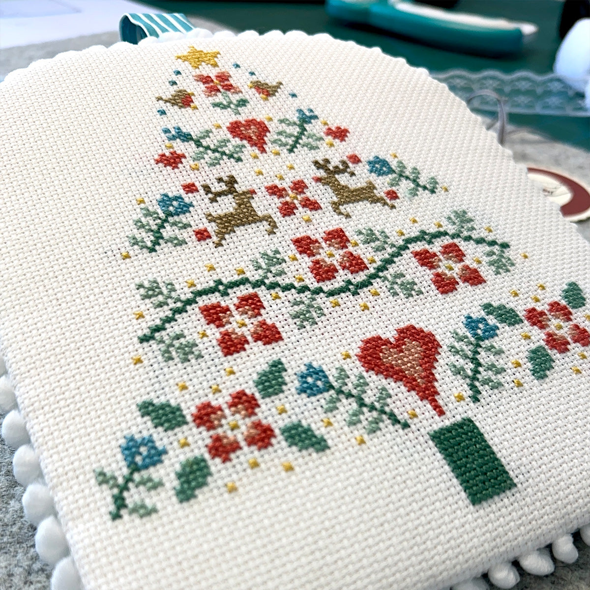 We are excited to bring you the first of our Christmas designs for 2025. Stitched on icy white fabric from Zweigart, the design features a Christmas Tree with gorgeous motifs in the branches.