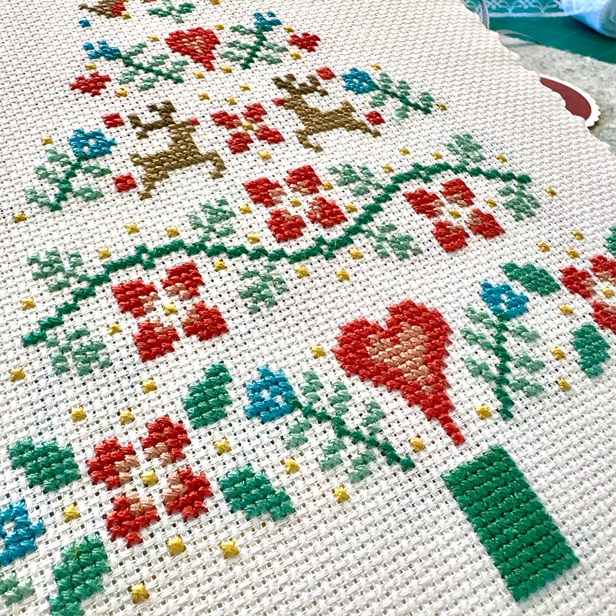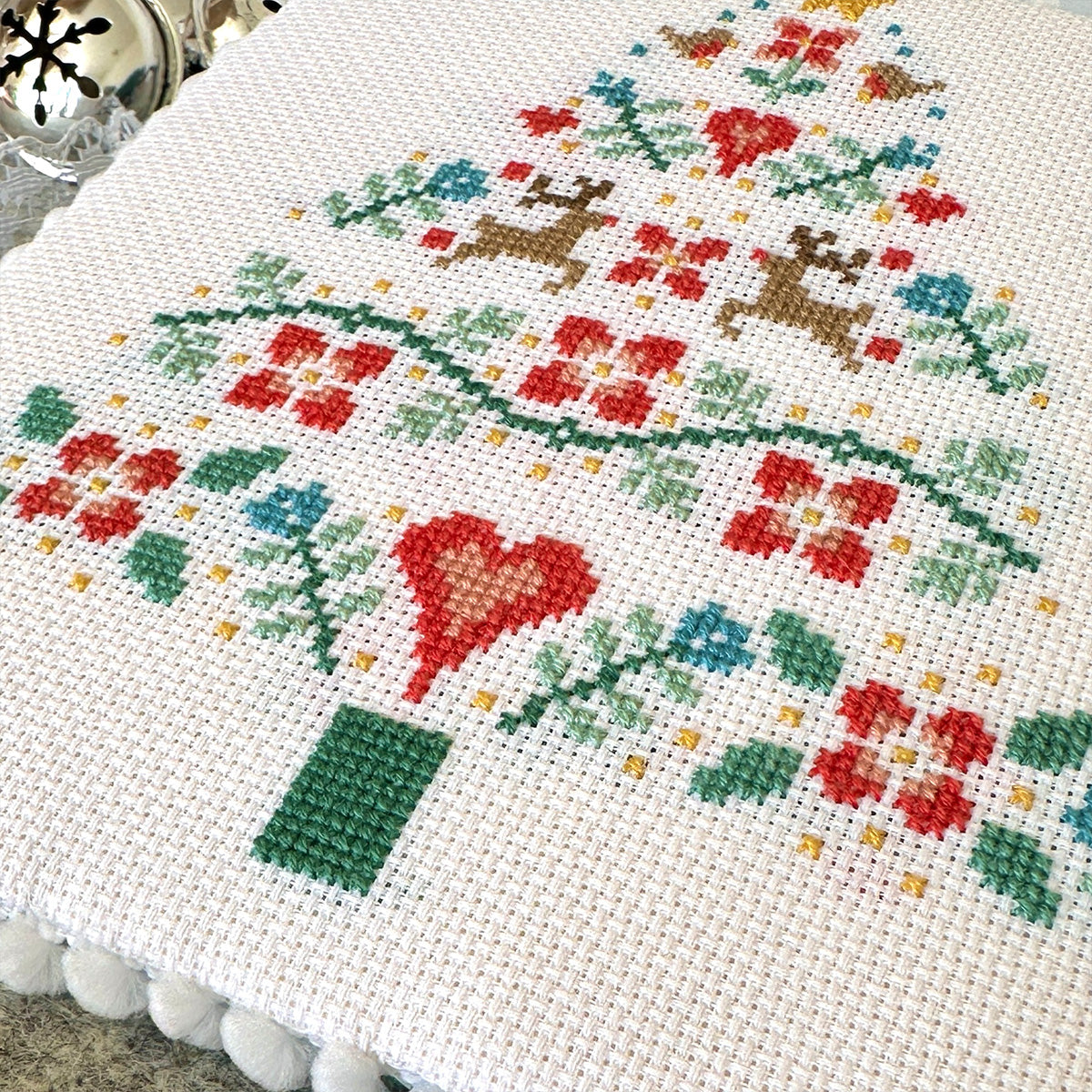 We are excited to bring you the first of our Christmas designs for 2025. Stitched on icy white fabric from Zweigart, the design features a Christmas Tree with gorgeous motifs in the branches.